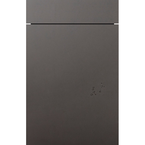 Front 19 mm dik met een mineraal beton geplamuurde laag op een grondplaat van MDF. De kanten rondom zijn afgewerkt met een bijpassende kleur kunststof vormkant.