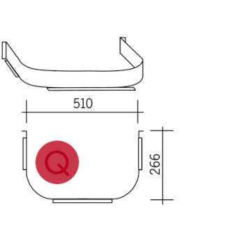 Metalen afwerkbeugel van 9 cm hoog, geschikt voor korfladen van 80, 90 en 120 cm breed met houten achterwand. Sparing: 51 cm breed, 26,6 cm diep.