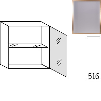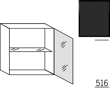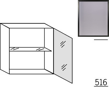 Bovenkast, 1 deur met smal metalen kader (2 cm breed) met greep en glaspaneel, inclusief 1 glazen legplank. Hoogte 52 cm, diepte 35 cm (excl. deurdikte).