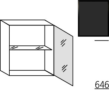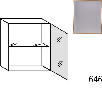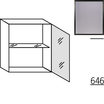Bovenkast, 1 deur met smal metalen kader (2 cm breed) met greep en glaspaneel, inclusief 1 glazen legplank. Hoogte 65 cm, diepte 35 cm (excl. deurdikte).