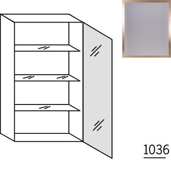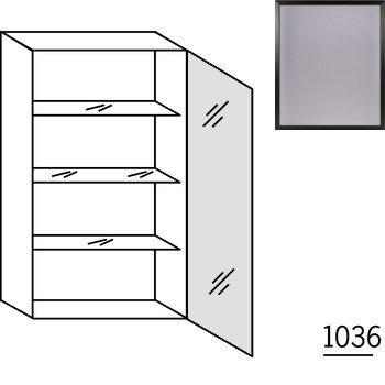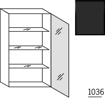 Bovenkast, 1 deur met smal metalen kader (2 cm breed) met greep en glaspaneel, inclusief 3 glazen legplanken. Hoogte 104 cm, diepte 35 cm (excl. deurdikte).
