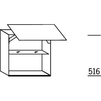 Bovenkast, 1 zwenkdeur met traploos zwenkbeslag met softsluiting, 1 legplank met een greeplijst achter de deur, kunststof in RVS-kleur. Hoogte 52 cm en diepte 35 cm (excl. deurdikte). In geopende stand steekt het front 17 cm boven de kast uit.