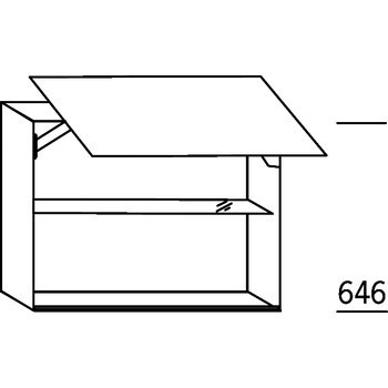 Bovenkast, 1 zwenkdeur met traploos zwenkbeslag met softsluiting, 1 legplank. Met een greeplijst achter de deur, kunststof in RVS-kleur. Hoogte 65 cm en diepte 35 cm (excl. deurdikte). In geopende stand steekt het front 17 cm boven de kast uit.