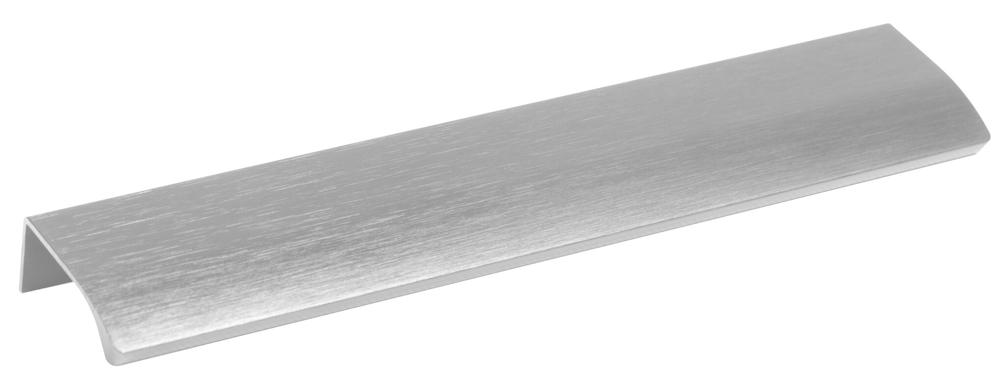 Greep van metaal RVS-kleurig. Greephoogte: 1,8 cm. Boormaat: 160 mm. De greep valt over het front en wordt vanaf de achterzijde op het front vastgeschroefd.