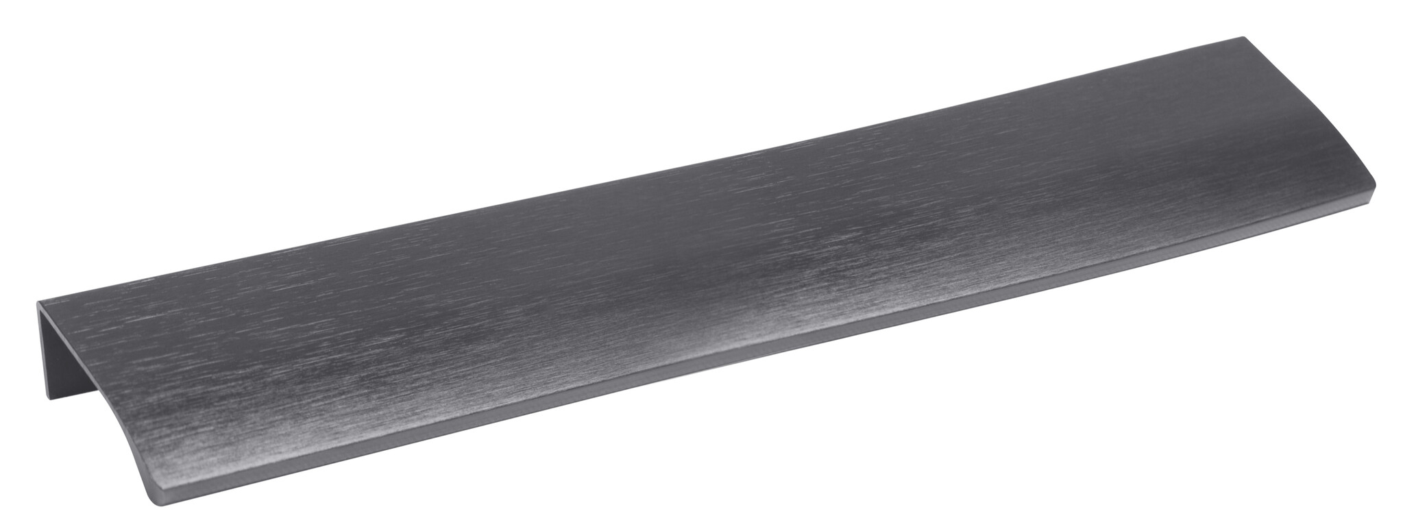 Greep van metaal grafiet geborsteld. Greephoogte: 1,8 cm. Boormaat: 160 mm. De greep valt over het front en wordt vanaf de achterzijde op het front vastgeschroefd.