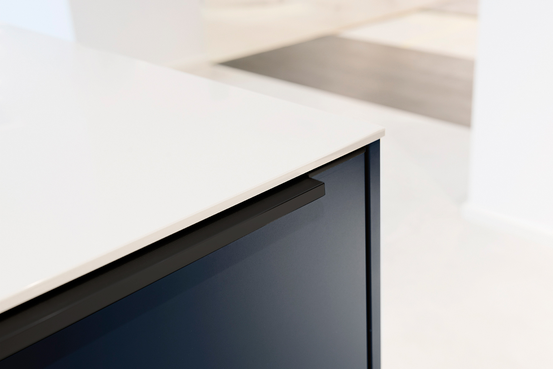 Zwart matte greep in een stijlvolle kleurafwerking. Hoogte: 1,7 cm. De greep wordt al in de fabriek stevig op het front gemonteerd.