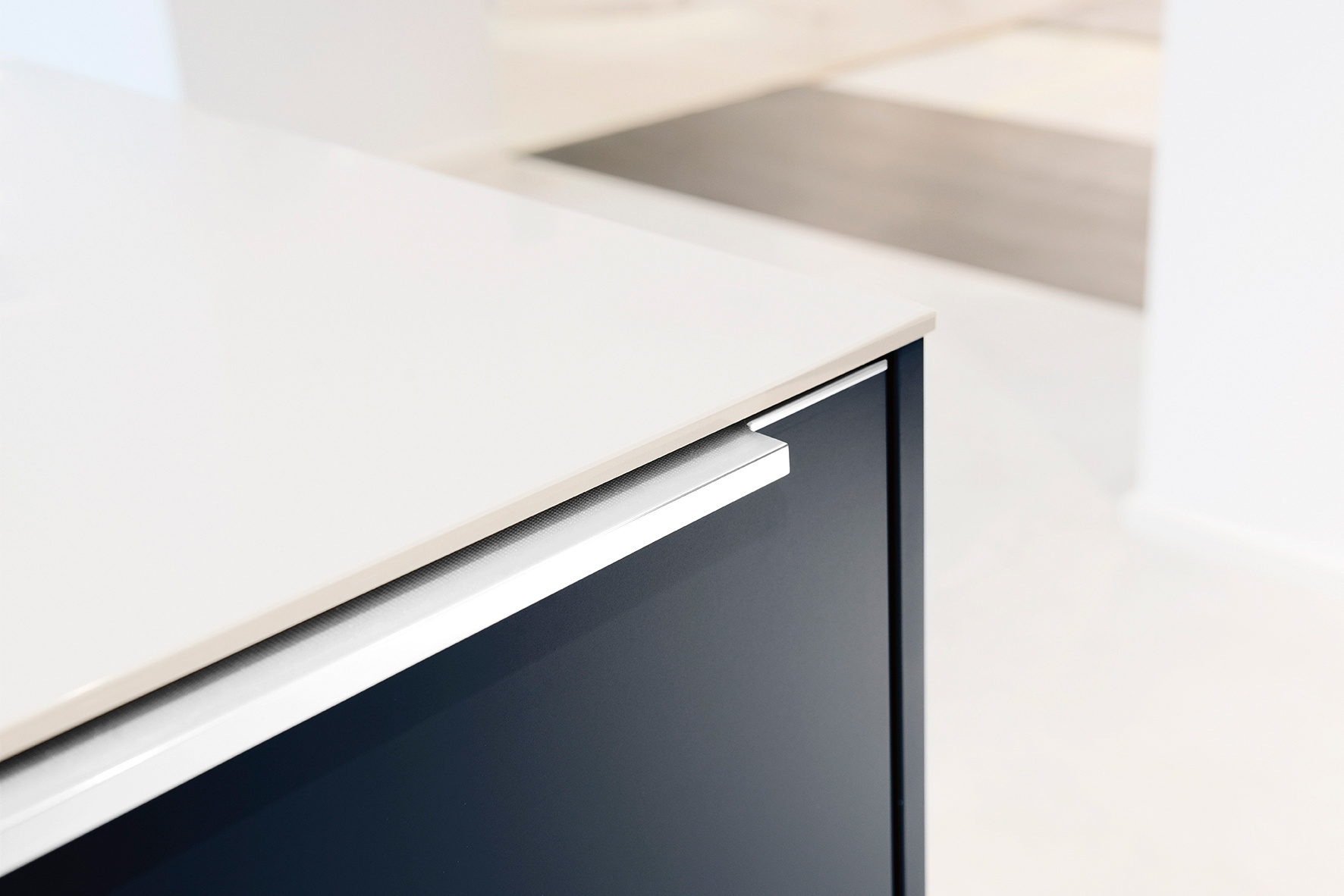 Greep kristalwit mat in een stijlvolle kleurafwerking. Hoogte: 1,7 cm. De greep wordt al in de fabriek stevig op het front gemonteerd.