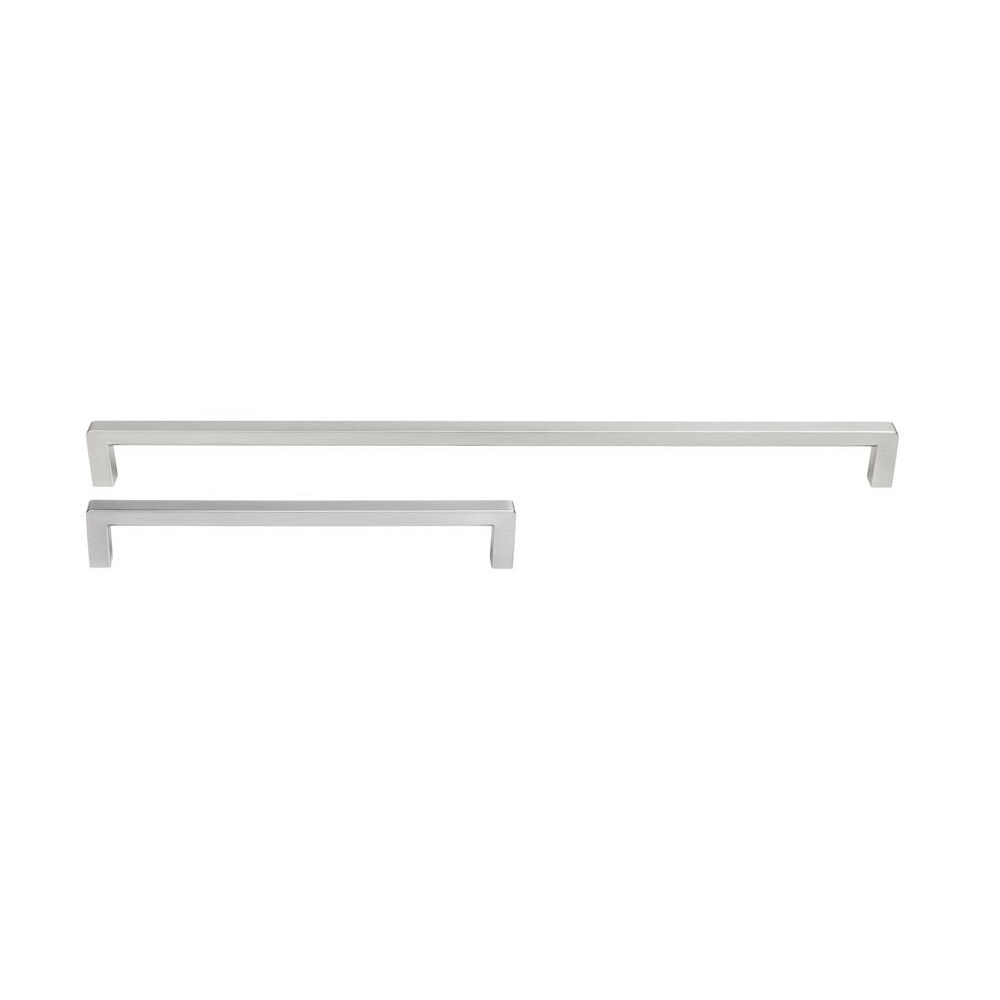 Greep systeem M421 metaal roestvrijstaal kleurig. Greeplengte bij een front van 30-50 cm breed: 16,9 cm. Greeplengte bij een front van 60-120 cm breed: 32,9 cm.