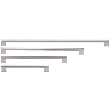 Greep systeem M530 metaal roestvrijstaal kleurig. Greephoogte 3,6 cm. Greeplengte 17,9-104,2 cm lang, afhankelijk van de front breedte.