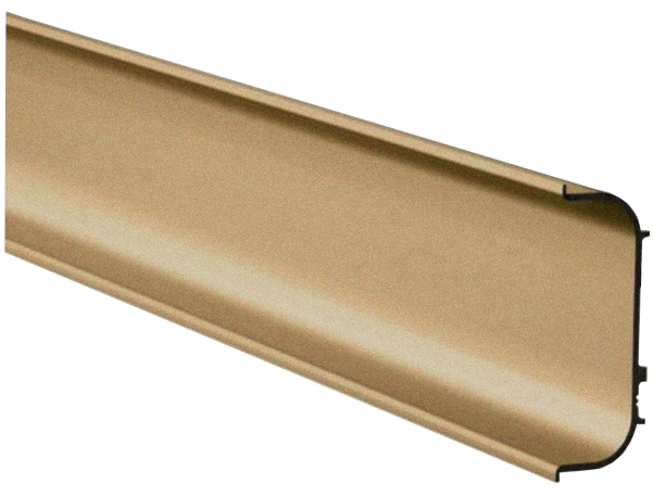 Horizontale greeplijst van gecoat aluminium, inclusief bij greeploze keukenkasten. Voorzien van kunststof eindkappen en hoekverbinders, soms met kleine overlengte. Lengtes en hoeken worden geleverd volgens de besteltekening van het keukenontwerp.
