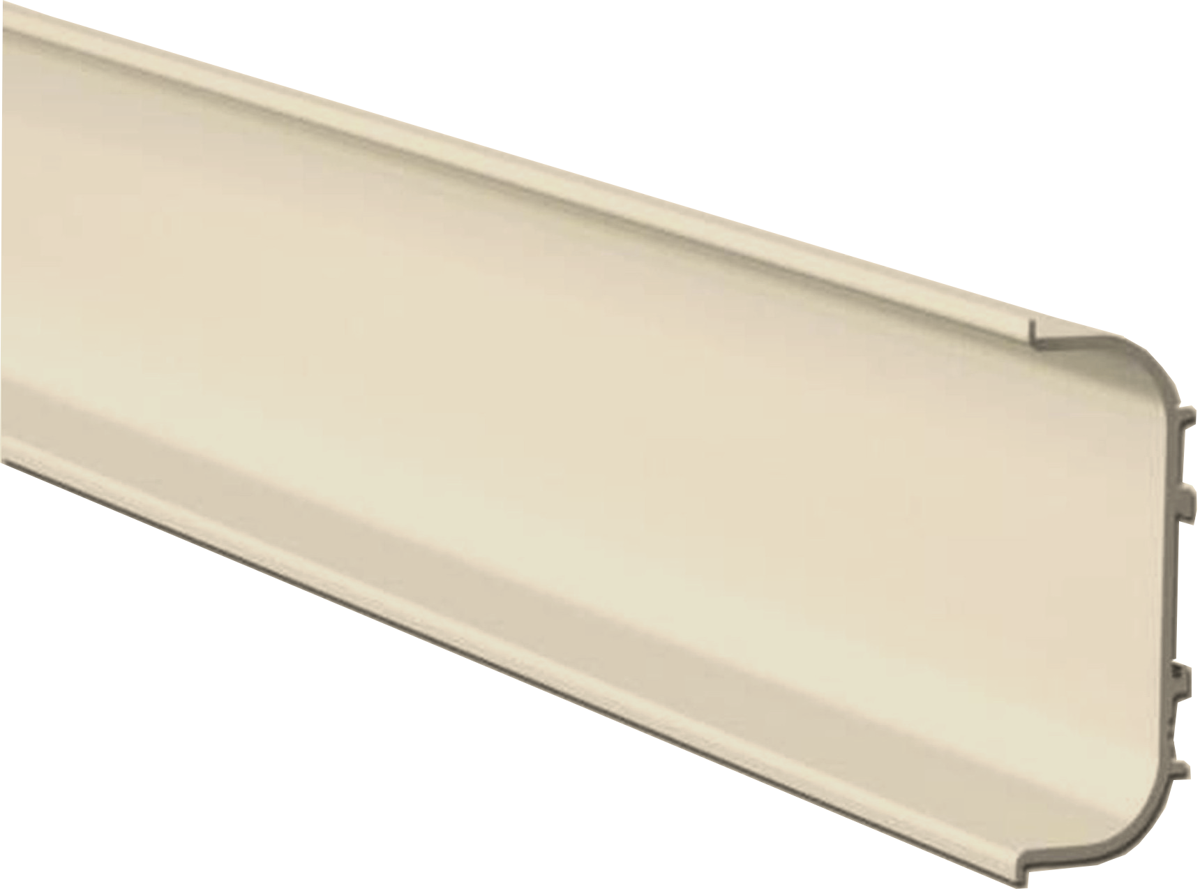 Horizontale greeplijst van gecoat aluminium, inclusief bij greeploze keukenkasten. Voorzien van kunststof eindkappen en hoekverbinders, soms met kleine overlengte. Lengtes en hoeken worden geleverd volgens de besteltekening van het keukenontwerp.