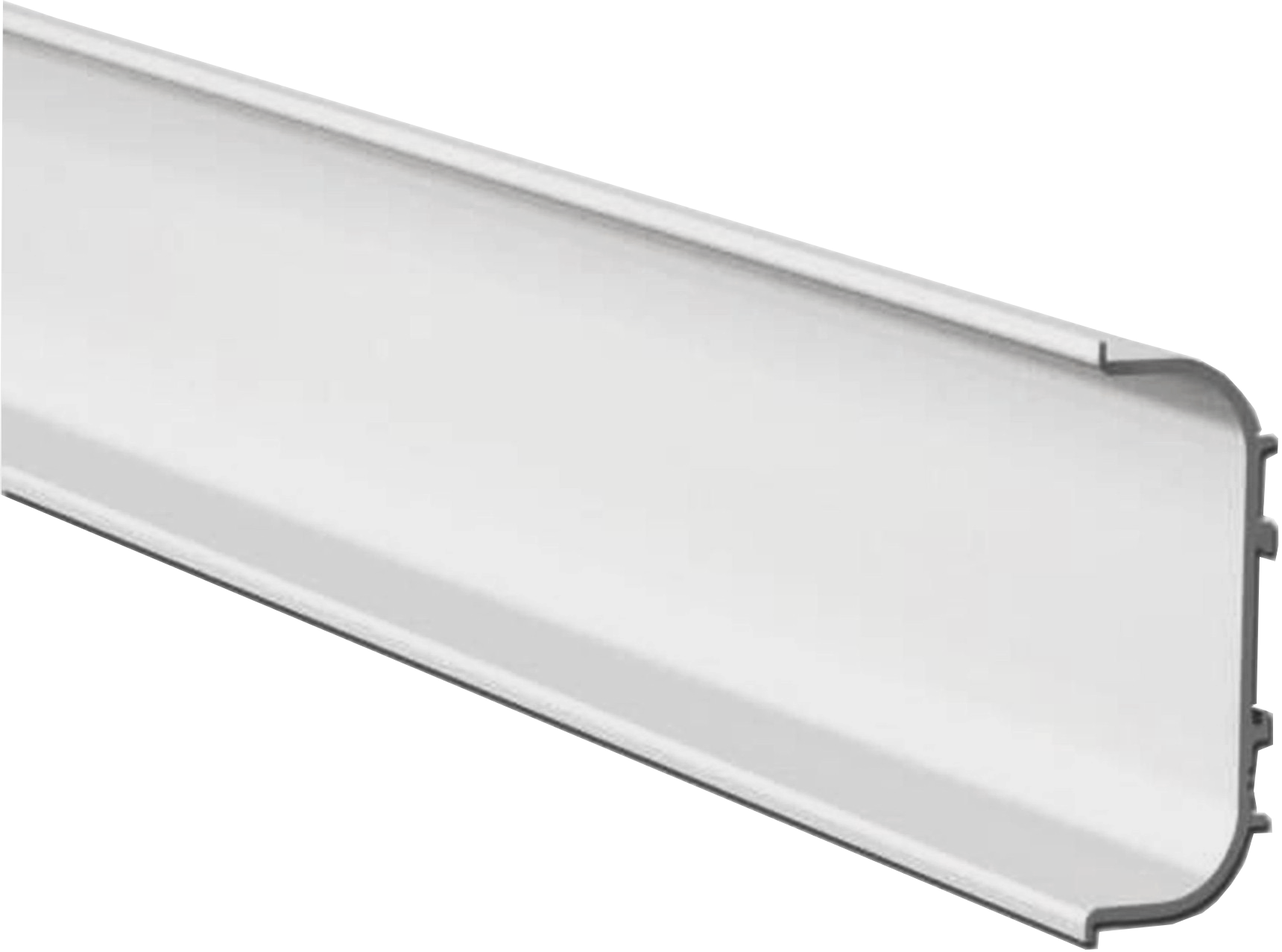 Horizontale greeplijst van gecoat aluminium, inclusief bij greeploze keukenkasten. Voorzien van kunststof eindkappen en hoekverbinders, soms met kleine overlengte. Lengtes en hoeken worden geleverd volgens de besteltekening van het keukenontwerp.