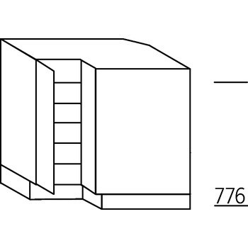 Hoekonderkast met 2 deuren (165° scharnieren), 2 legplanken. Hoogte: 78 cm (excl. plint). Openingshoek kan beperkt worden door nabijgelegen obstakels, zoals een grote handgreep.