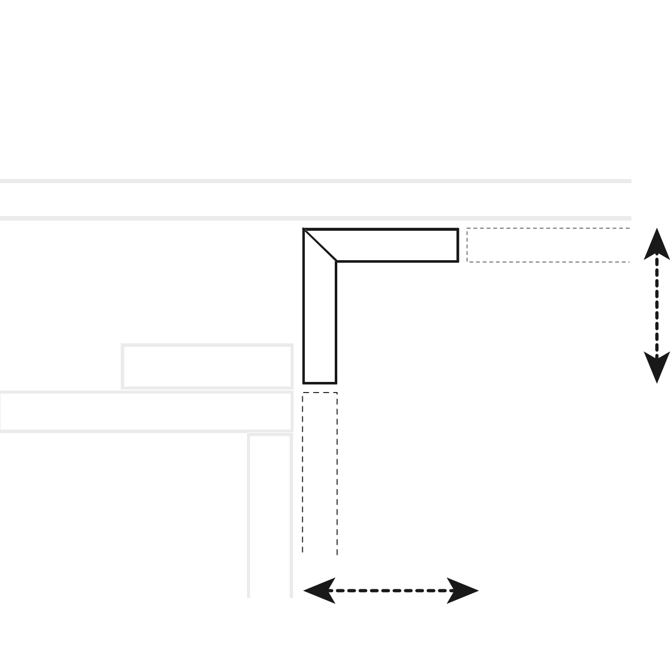 De standaardbreedte van een hoekpasstuk 90° verbreden naar links en/of rechts. Deze kan in stappen van 1 cm worden vergroot, tot een maximum van 24 cm. Het ingevulde aantal staat gelijk aan het aantal × 1 cm extra verbreding.