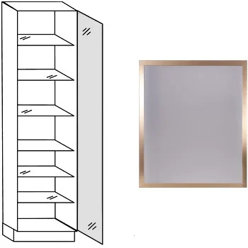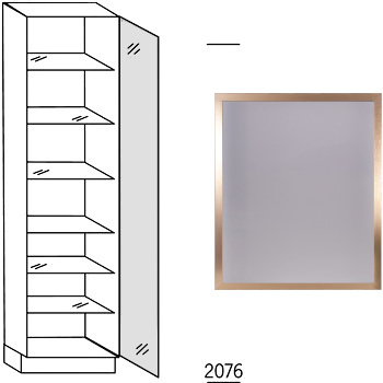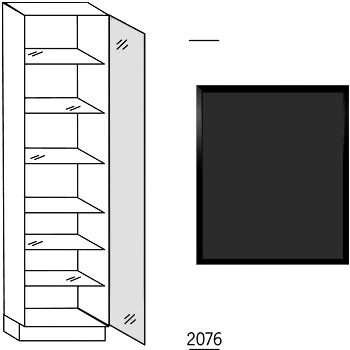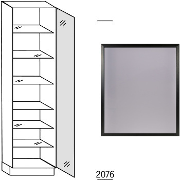 Hoge keukenkast, 1 deur met smal metalen kader (2 cm breed) en glaspaneel, 1 vaste plank, inclusief 5 glazen legplanken. Hoogte 207,8 cm (excl. plint).