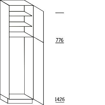 Hoge keukenkast, 1 deur, 1 deur met nis 140 cm hoog, 2 legplanken. Hoog 220,8 cm (excl. plint).