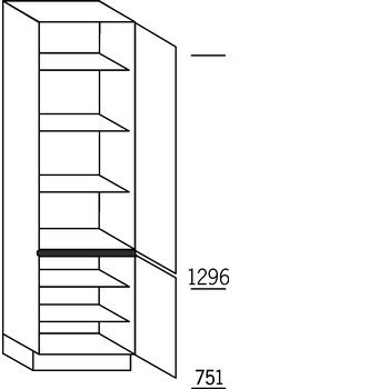 BeschrijvingHoge keukenkast 208 cm hoog, 2 deuren, 5 legplanken