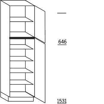 BeschrijvingHoge keukenkast 221 cm hoog, 2 deuren, 5 legplanken