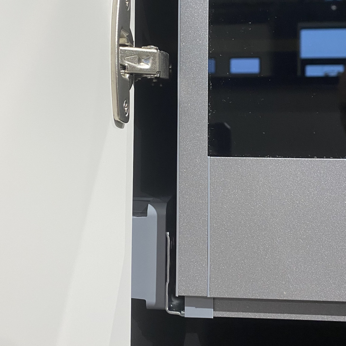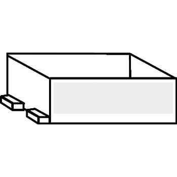 Korflade voor in een kast met een draaideur, geleverd met een metalen front met glas, inbouwhoogte: 21,6 cm. Let op! Ø8 mm pluggen voor bevestiging van ladegeleiders worden bij losse levering niet meegeleverd en dienen door de monteur te worden verzorgd.