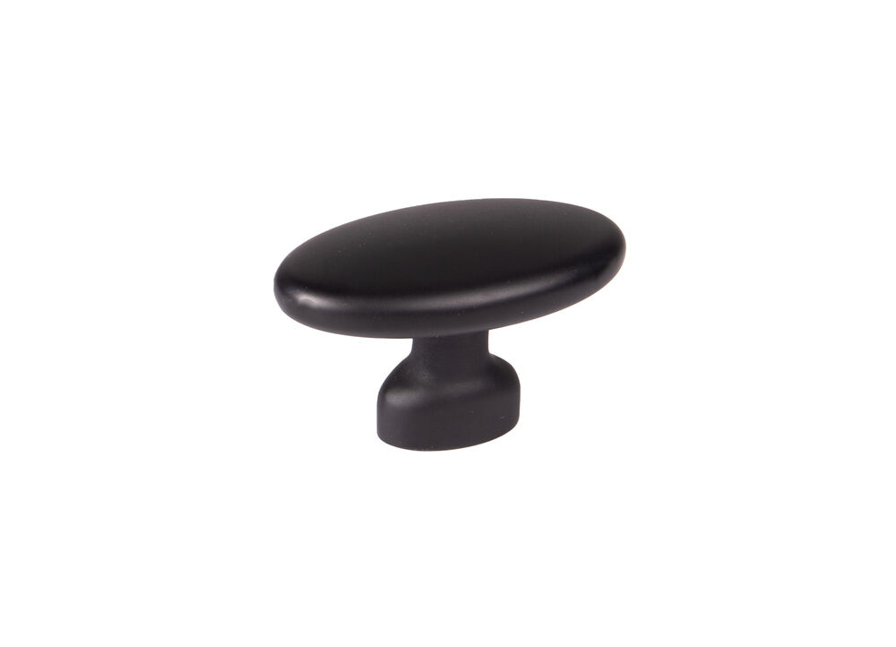 Knop 112 metaal zwart. Greephoogte 3,6 cm. Boormaat 1,6 cm.