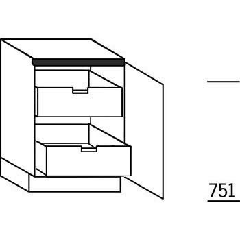 Onderkast, 1 deur, 2 binnenkorven met afstandhouders. Hoog 78 cm (excl. plint).