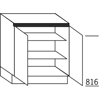 Onderkast, 2 deuren, 2 legplanken. Hoog 84,5 cm (excl. plint).