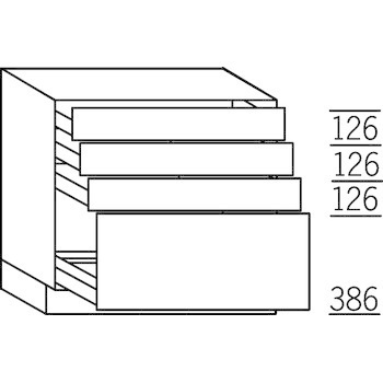 Onderkast, 1 korf, 3 laden. Hoog 78 cm (excl. plint).