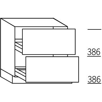 Onderkast, 2 korven. Hoog 78 cm (excl. plint) en diep 56 cm (excl. deurdikte).