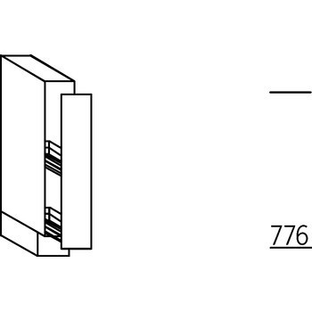 Onderkast met uittrekbaar front met rekjes voor olieflessen en kruidenpotjes. Hoog 78 cm (excl. plint). Let op! De greep komt verticaal op het front.