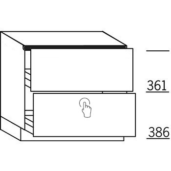 Onderkast, 1 korf, 1 korf met Tipmatic softclose Push-to-Open. Hoog 78 cm (excl. plint).