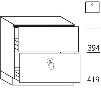 Onderkast voor spoelbak, 1 binnenblende, bovenste korf 40 cm diep met houten achterwand en beschermbeugel ø17 cm, onderste korf 50 cm diep met Tipmatic softclose Push-to-Open. Hoog 84,5 cm (excl. plint). Bij kastbreedte 60 cm; max breedte spoelbak 40 cm.