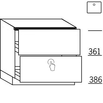 Onderkast voor spoelbak, 1 binnenblende, bovenste korf 40 cm diep met houten achterwand en beschermbeugel ø17 cm, onderste korf 50 cm diep met Tipmatic softclose Push-to-Open. Hoog 78 cm (excl. plint). Bij kastbreedte 60 cm; max breedte spoelbak 40 cm.