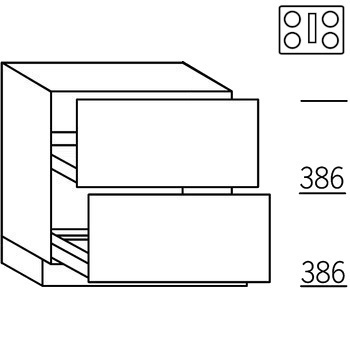 Onderkast voor kookplaat met afzuiging. 1 lade met korfblende, 1 korf. Bovenin een afwerkblende met uitneembare bodem. Hoogte: 78 cm (excl. plinthoogte).
