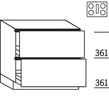 Onderkast voor kookplaat met afzuiging. 1 lade met korfblende, 1 korf. Bovenin een afwerkblende met uitneembare bodem. Hoogte: 78 cm (excl. plinthoogte).