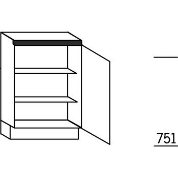 Ondiepe onderkast, 1 deur, 2 legplanken. Hoog 78 cm (excl. plint).