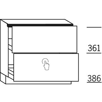 Ondiepe onderkast, 1 korf, 1 korf met Tipmatic softclose Push-to-Open. Hoog 78 cm (excl. plint).