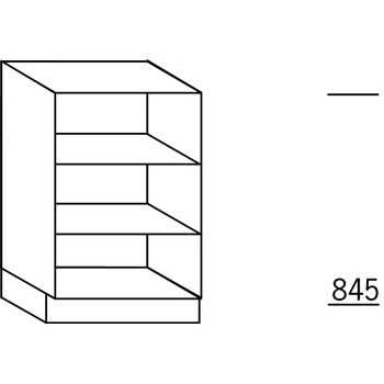 Onderkast regaal gelijklopend met frontdeur, binnendiepte 54,3 cm, 2 vaste planken. Hoog 84,5 cm (excl. plint) en diep 58,3 cm, gelijk met voorzijde front. Levering is mogelijk in elke gewenste breedte van 15 cm tot 60 cm.