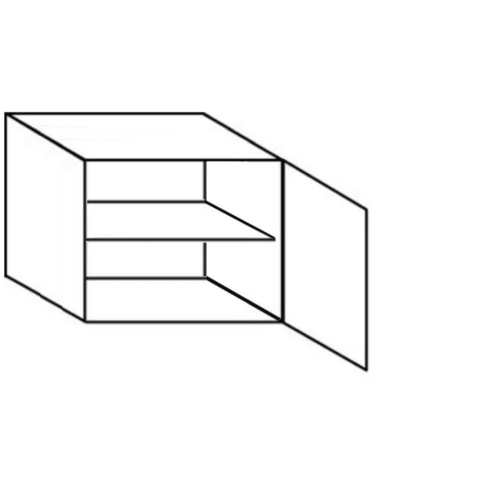 Greeploze opzetkast, 1 deur. Hoog 52 cm. Voor plaatsing bovenop een hoge kast. Geleverd zonder ophangbevestiging; optioneel mee te bestellen (art.nr. MP-SWA).