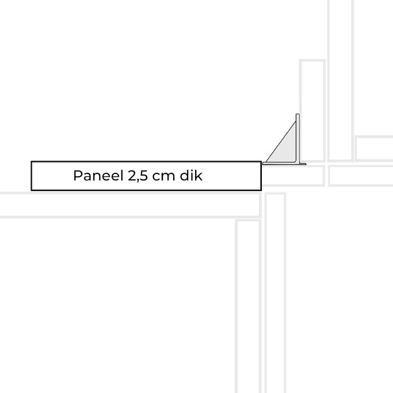 BeschrijvingPaneel 2,5 cm dik - voor hoekoplossing bij greeploze onderkasten