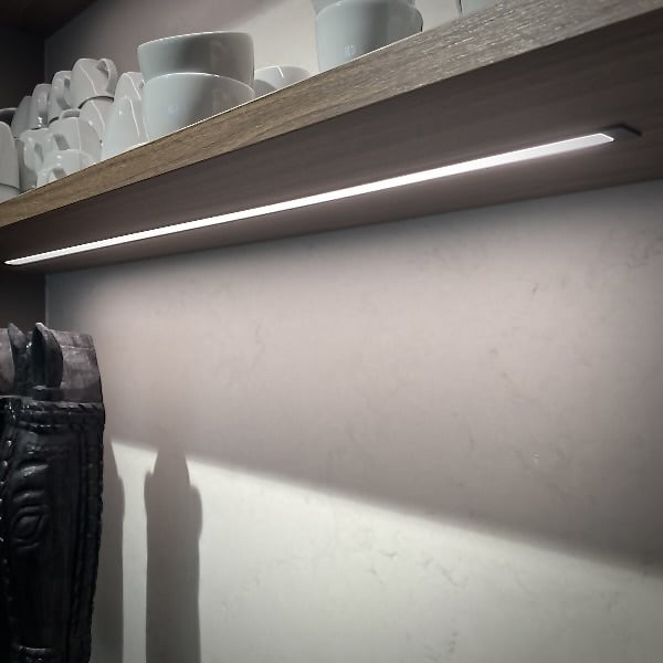 BeschrijvingWandplank van 2,5 cm hoog met verlichting echthout fineer (FE)